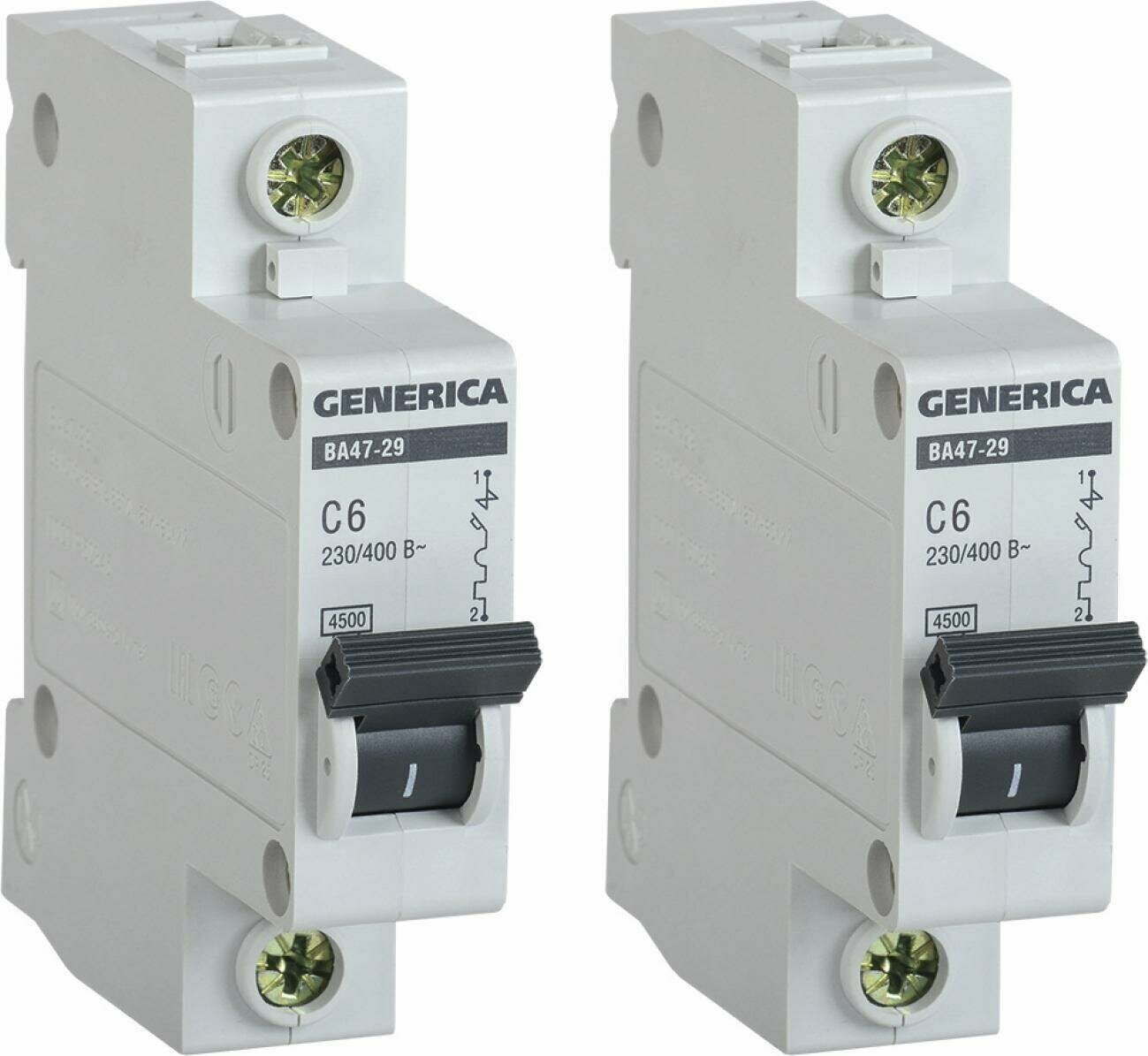 Автоматический выключатель Generica ВА47-29 (эконом) 1P 6А характеристика C (комплект из 2 шт) информация: