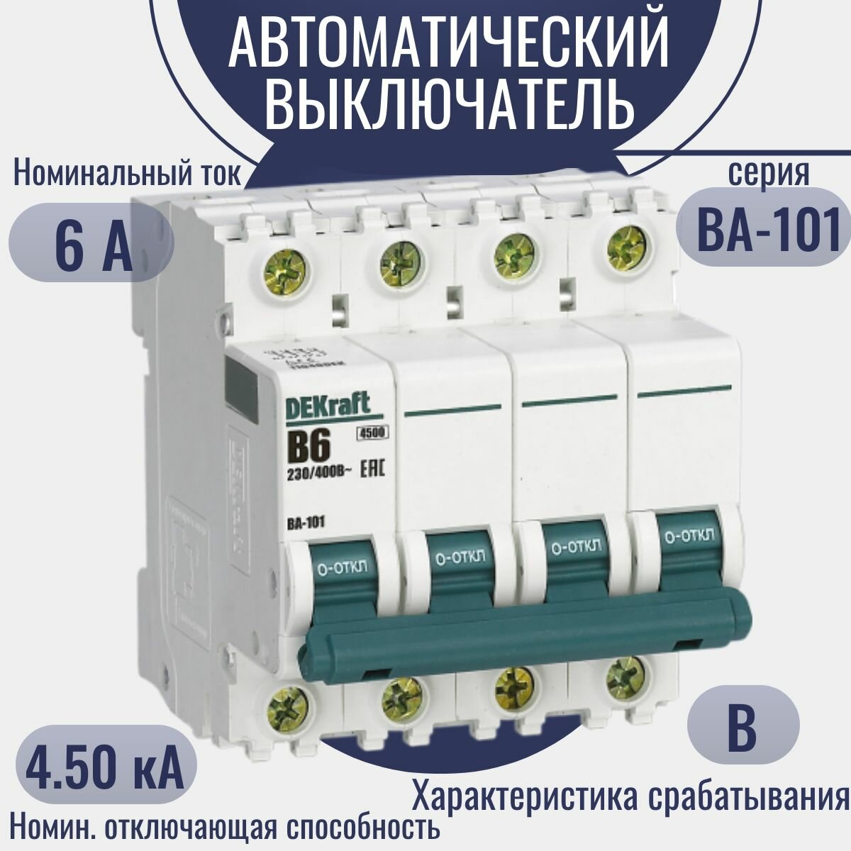 Отзывы на DEKraft ВА-101 Автоматический выключатель 4Р 6А (B) 4,5кА, DEKraft, арт.11040DEK