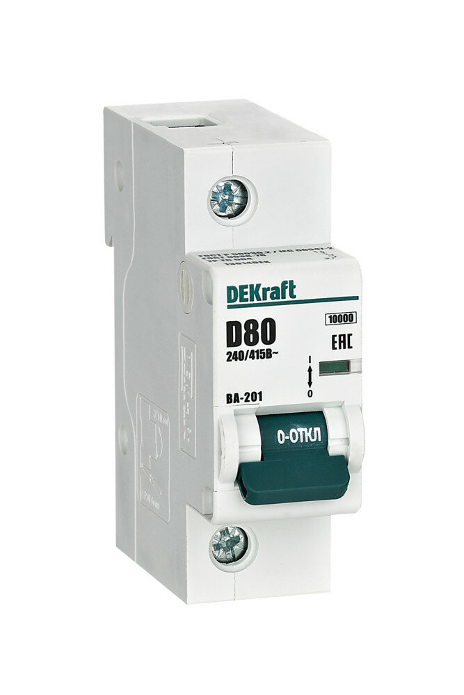 10 цен на DEKraft Автоматический выключатель 1Р 80А х-ка D ВА-201 10кА, DEKraft, арт.13014DEK