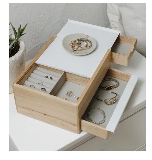 Шкатулка для украшений Umbra Mini Stowit, белая-дерево