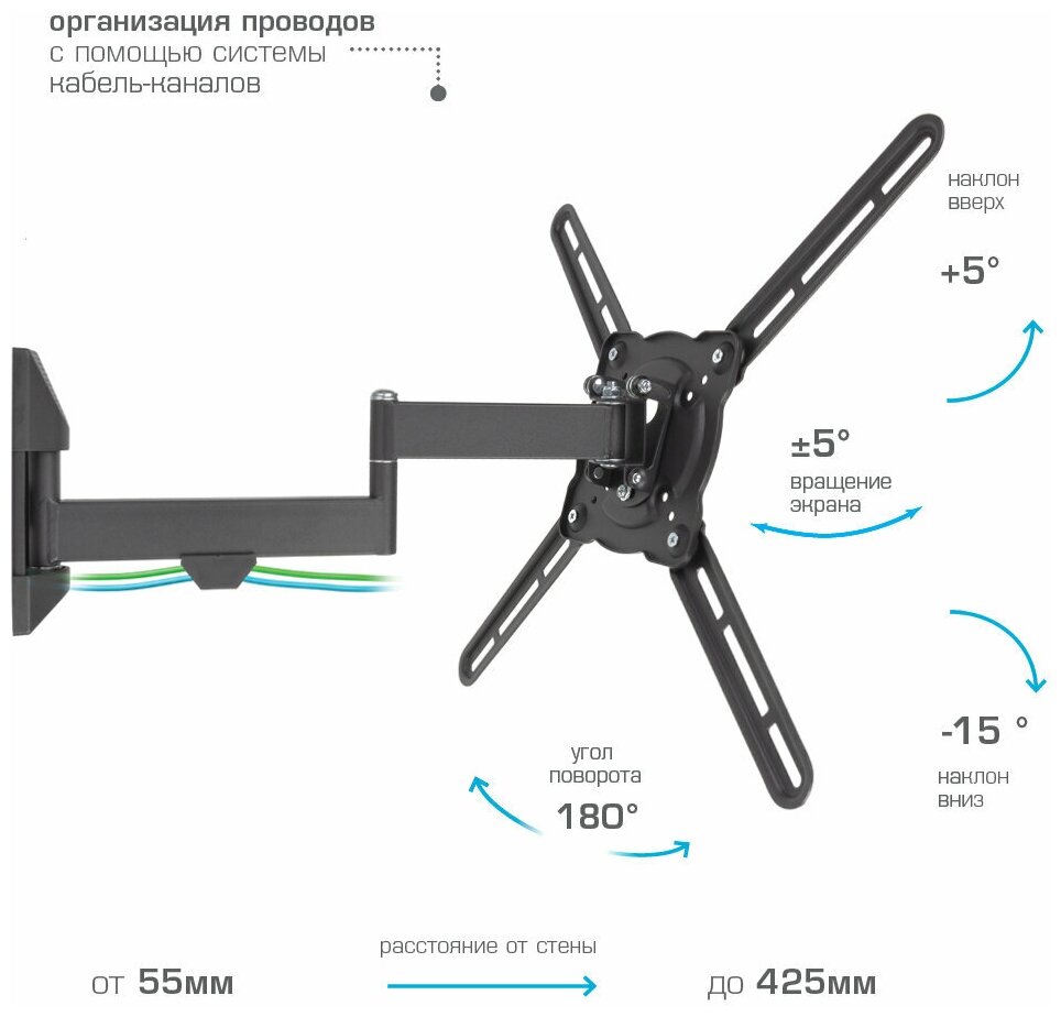 Отзывы на Кронштейн Kromax ATLANTIS-15, TV 26-55, настенный, наклонно-поворотный,чер