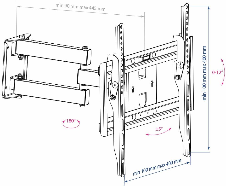 Кронштейн Arm Media PT-15, TV 32-55, настенный, наклонно-поворотный, чер