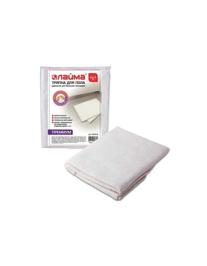 Тряпка для мытья пола Лайма "Премиум" (60х75 см, плотность 200 г/м2, 50% вискоза, 40% хлопок, 10% полиэстер)
