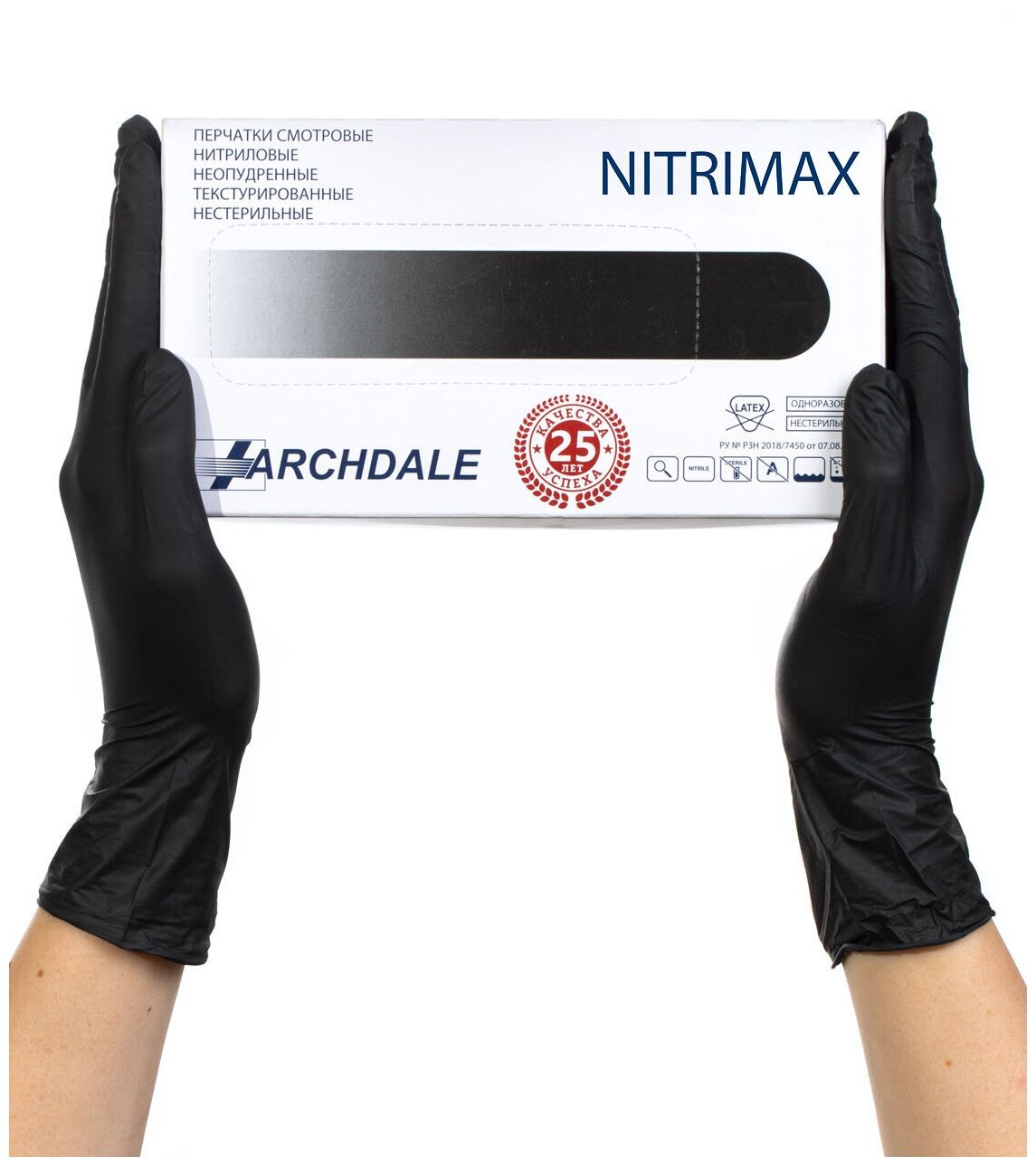 Перчатки смотровые Archdale NitriMAX, 50 пар, размер: XL, цвет: черный, 1 уп.