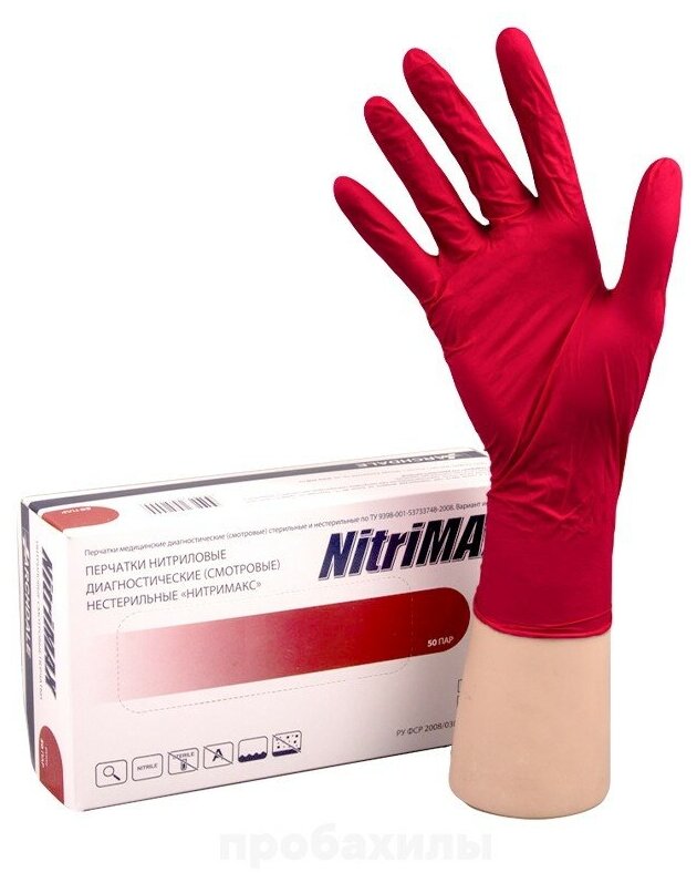 10 цен на Перчатки нитриловые NITRIMAX красные, (50) пар, Размер S