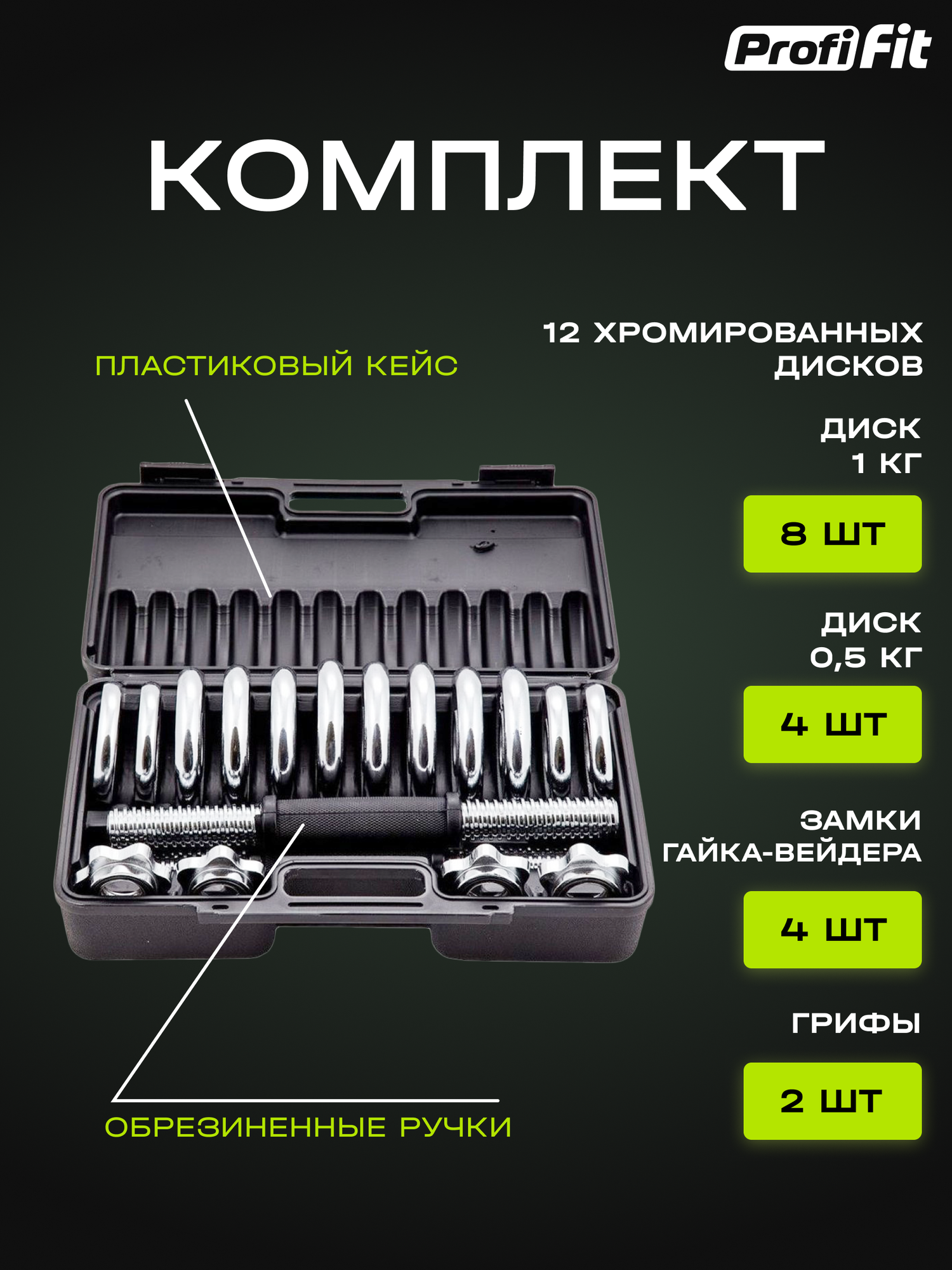 Набор гантелей разборный PROFI FIT в кейсе 15 кг информация:
