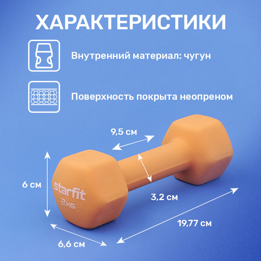 10 цен на Гантель неопреновая Starfit DB-201 2 кг, оранжевый пастель