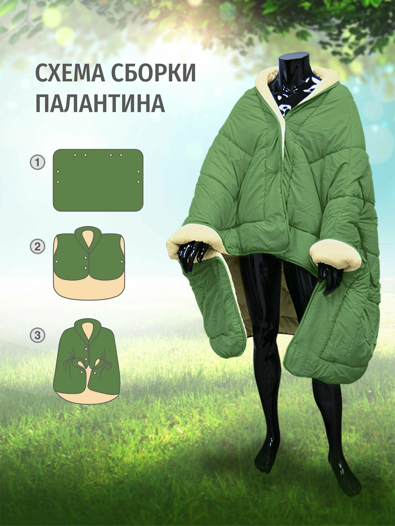 Плед-подушка-палантин "OL-Tex темно-зеленый/сливочный, 135 х 200 см для путешествий и туризма информация: