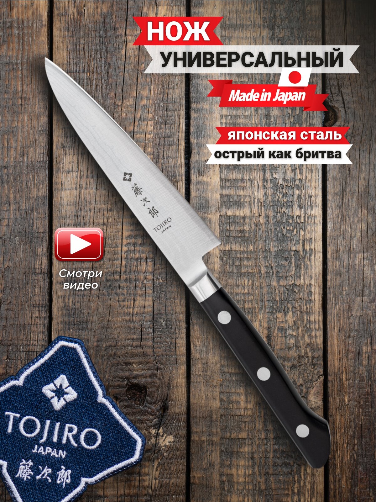 Отзывы на Универсальный кухонный нож TOJIRO , длина лезвия 120 мм, сталь vg-10, 37 слоев, рукоять стабилизированная эко-древесина F-650