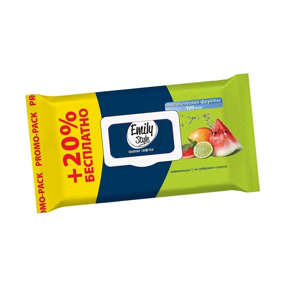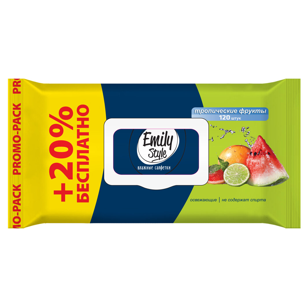 10 цен на Салфетки влажные эмили стайл 120ШТ С крышкой тропические фрукты +20%бесплатно