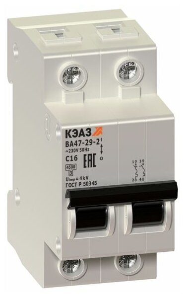 318241 Автоматический выключатель КЭАЗ ВА47-29-2C16-УХЛ3 16А 2п C, 4.5 кА