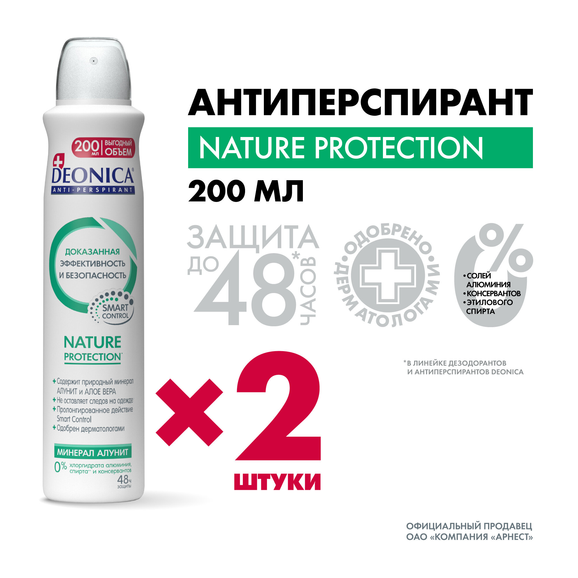 Дезодорант женский Deonica Nature Protection, антиперспирант с алунитом, спрей, 200мл - 2шт. информация: