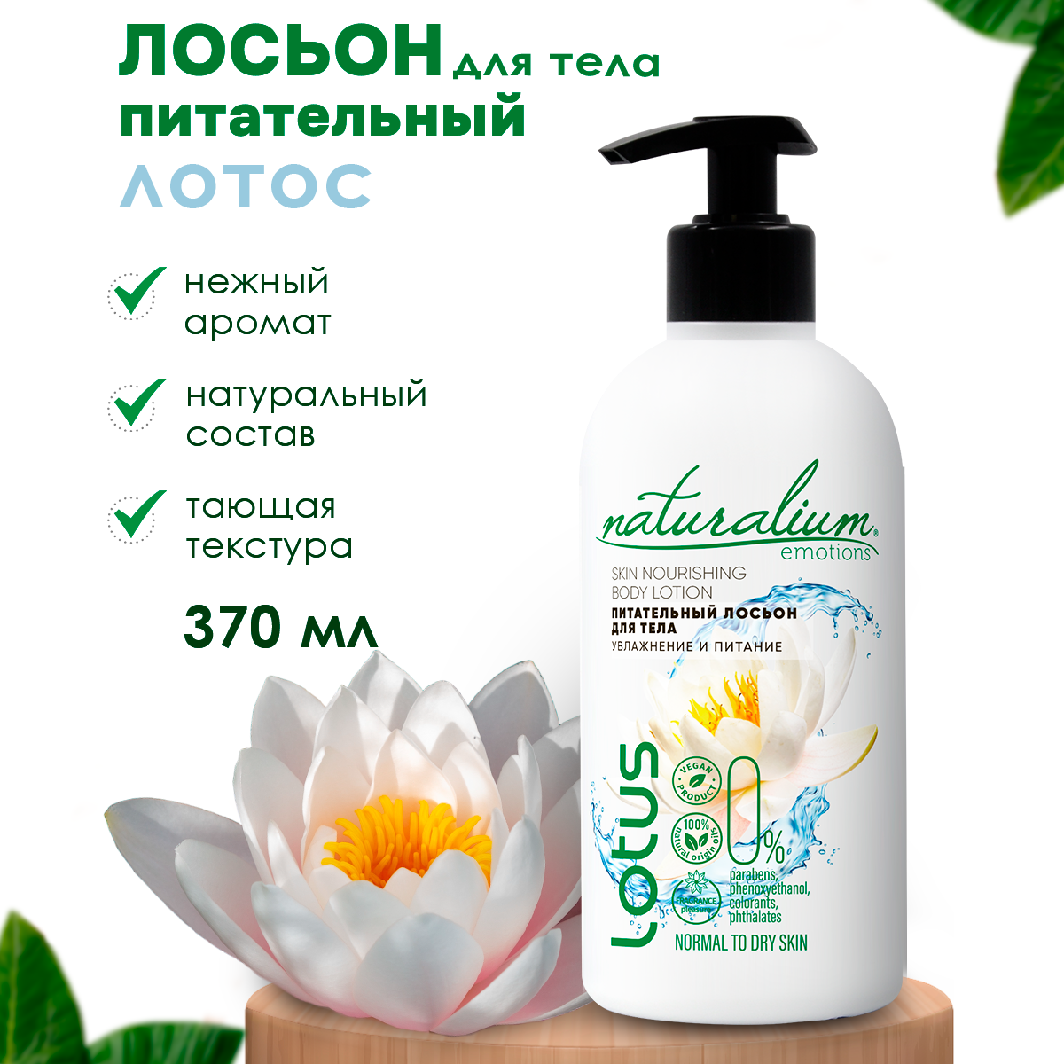 10 цен на Naturalium Emotions Увлажняющий лосьон для тела "Белый Лотос", 370мл. Натуральное питательное средство для ухода кожи рук, ног и тела/ веган