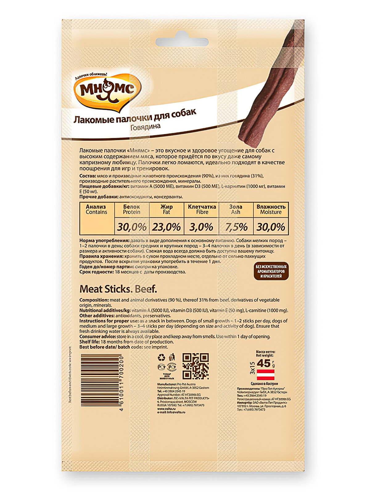 Мнямс лакомые палочки с говядиной для собак 45 г х 2шт. информация: