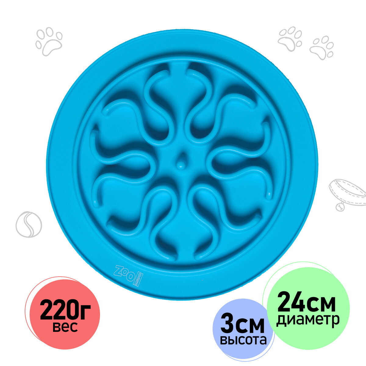 Миска силиконовая для собак и кошек Zoo One, рельефная (волны), игровая, для медленного поедания корма, 24 см, голубая, 21003 информация: