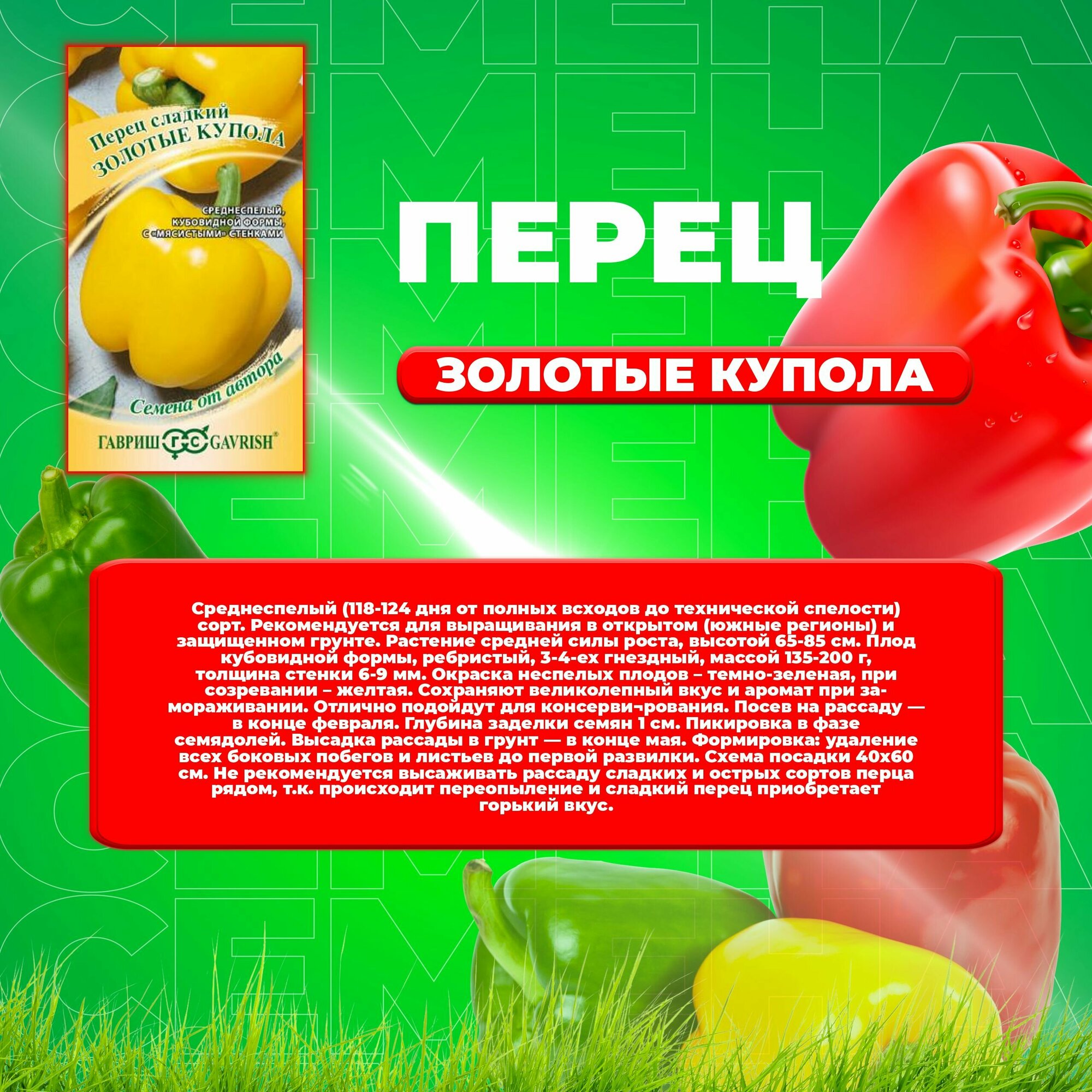 Перец сладкий Золотые купола, 0,1г, Гавриш, от автора (5 уп) информация: