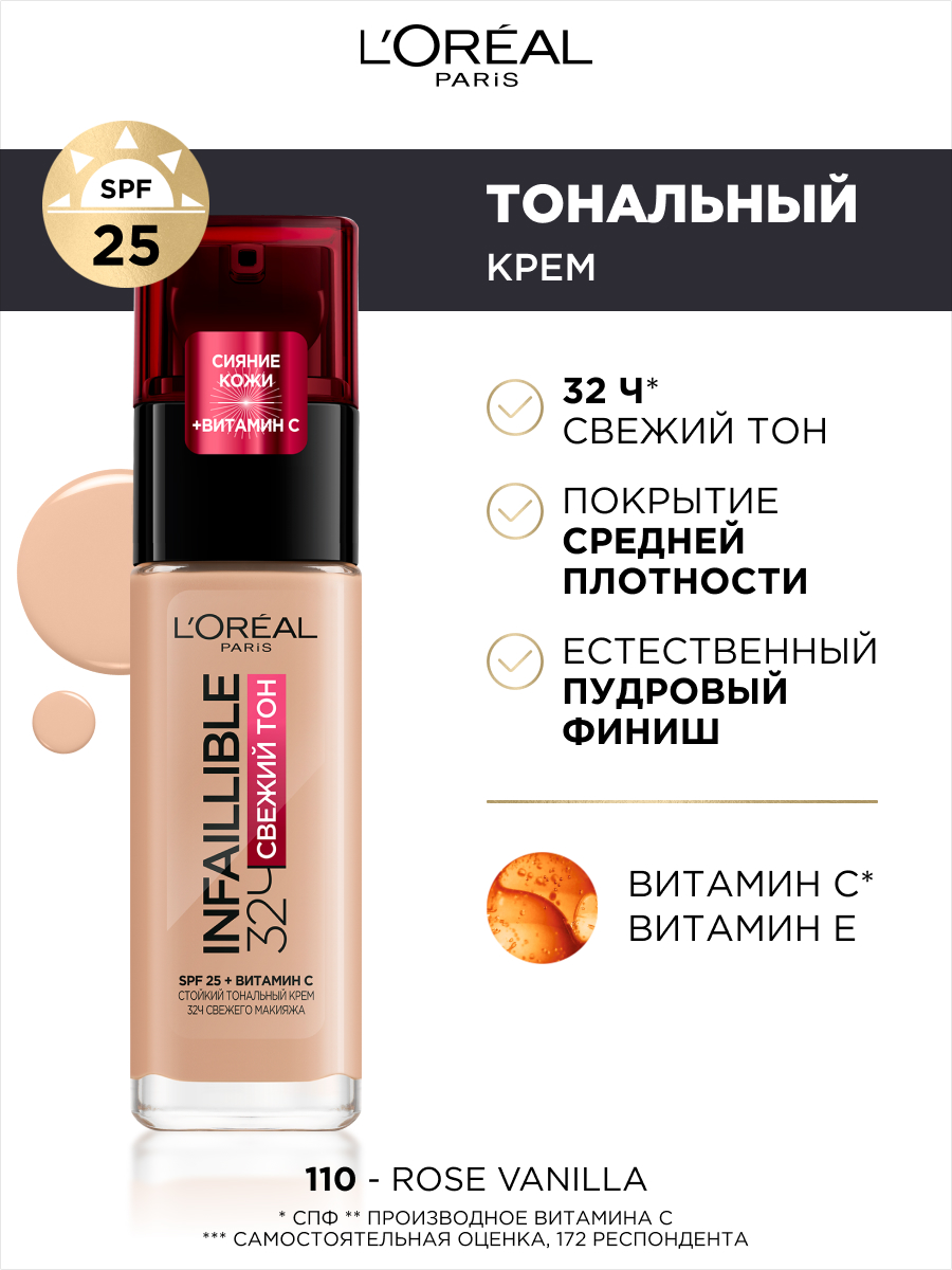 L'Oreal Paris Стойкий тональный крем INFAILLIBLE свежий ТОН, оттенок 110, 30 мл