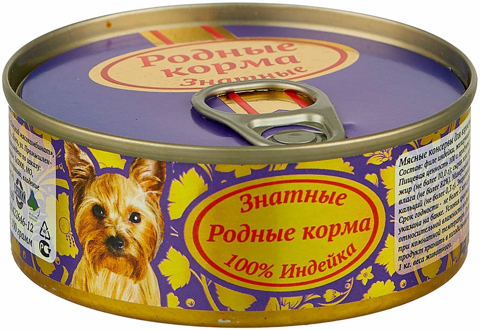Родные корма консервы для собак Знатные 100 % Индейка 100г 147 ₽