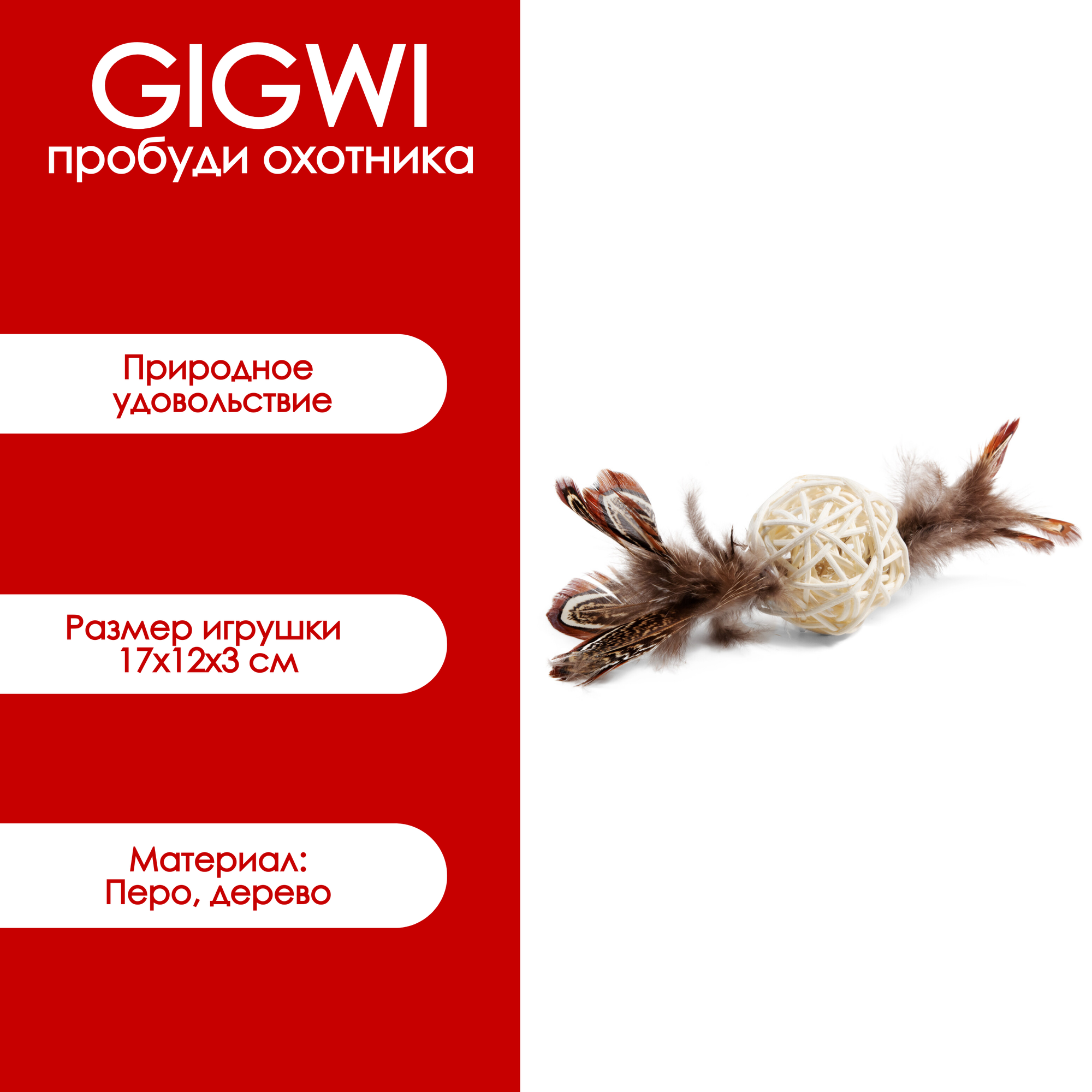 Отзывы на GiGwi Игрушка плетеный мячик с колокольчиком и перьями 13 см дерево,перо 0,031 кг 41435