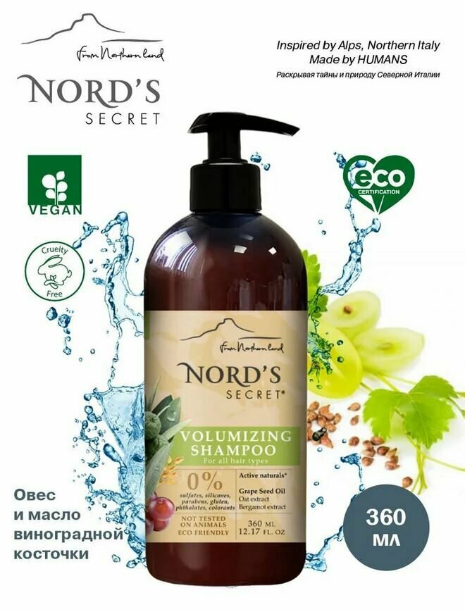 10 цен на Шампунь для объема волос с маслом кедрового дерева и экстрактом овса Nord's Secret Volumizing Shampoo Oat and Bergamot Extract Oil /360 мл/гр.