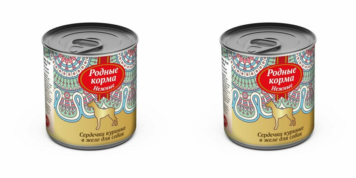 Родные Корма Консервы для собак Нежные, сердечки куриные в желе, 240 г, 2 шт/уп информация: