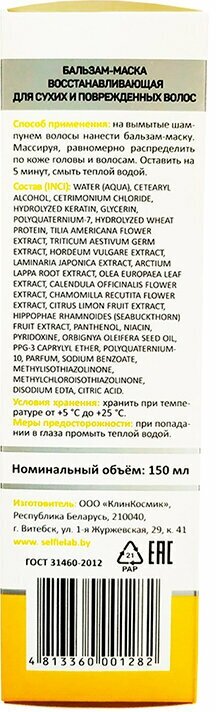 SelfieLab Бальзам-маска для волос Восстанавливающий 150мл информация: