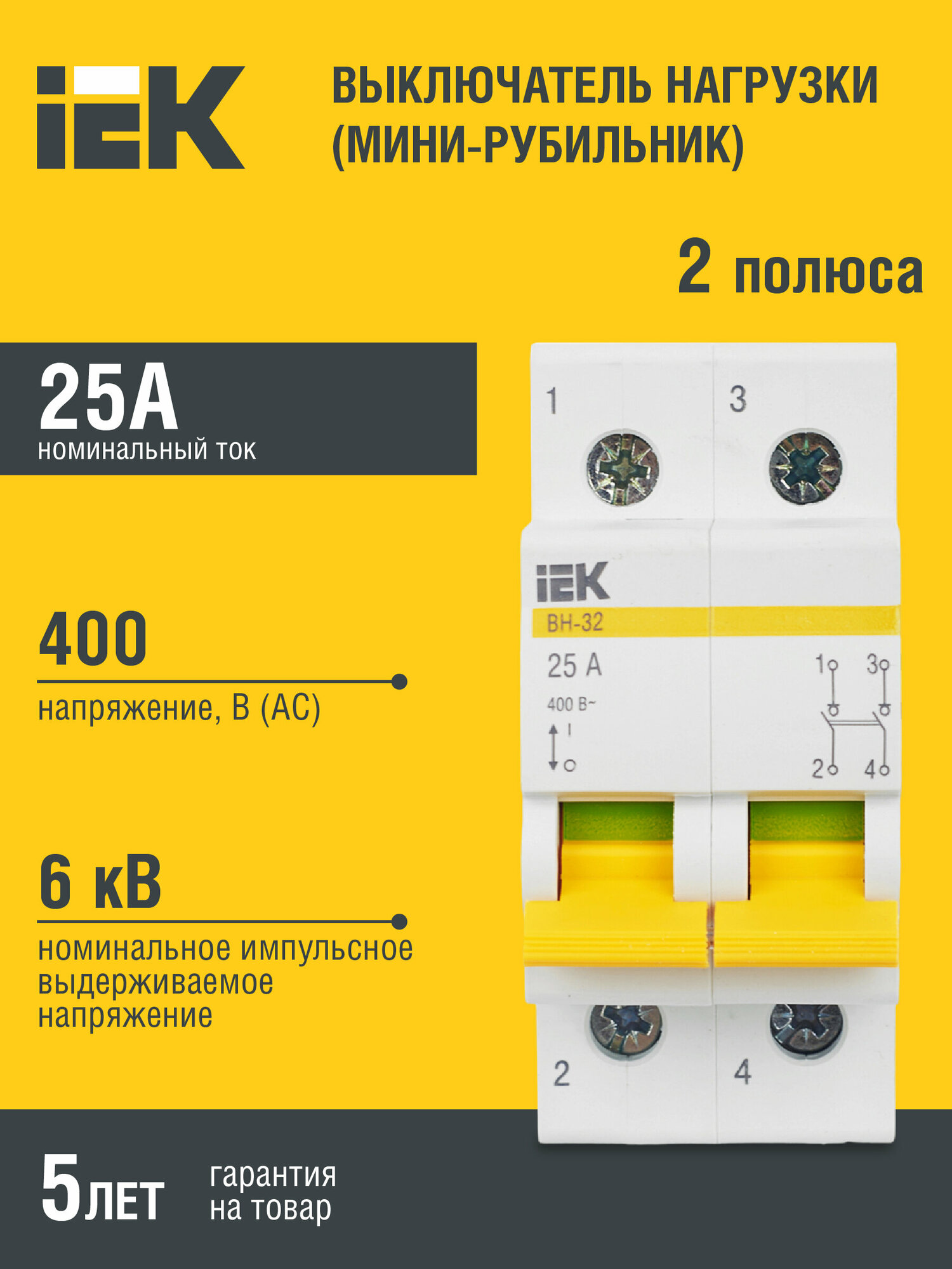 Выключатель нагрузки IEK ВН-32 25А/2П информация: