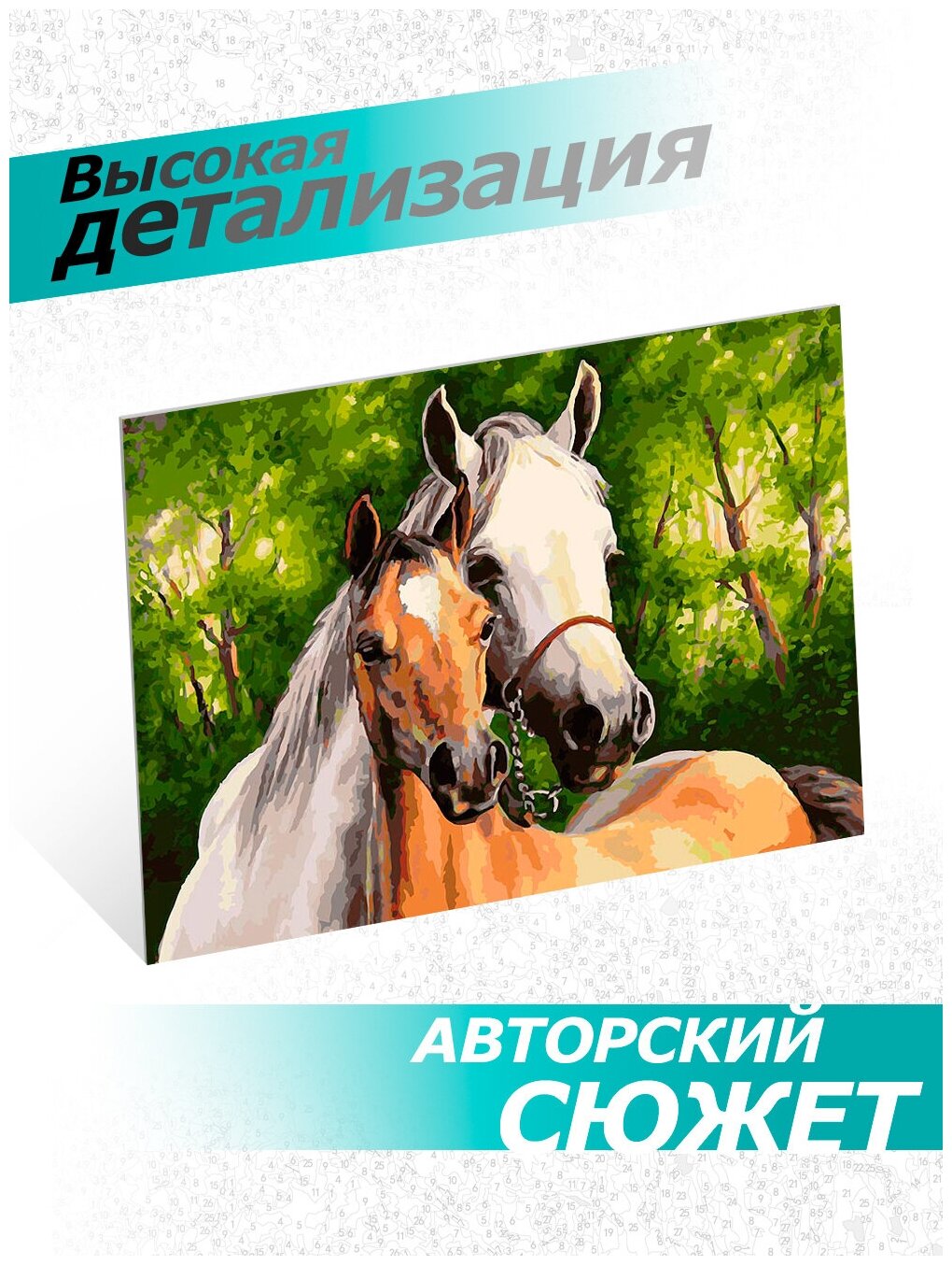 Картина по номерам Белоснежка "Мать и дитя" / Раскраска / На картоне 30х40 см. / Животные / Лошади