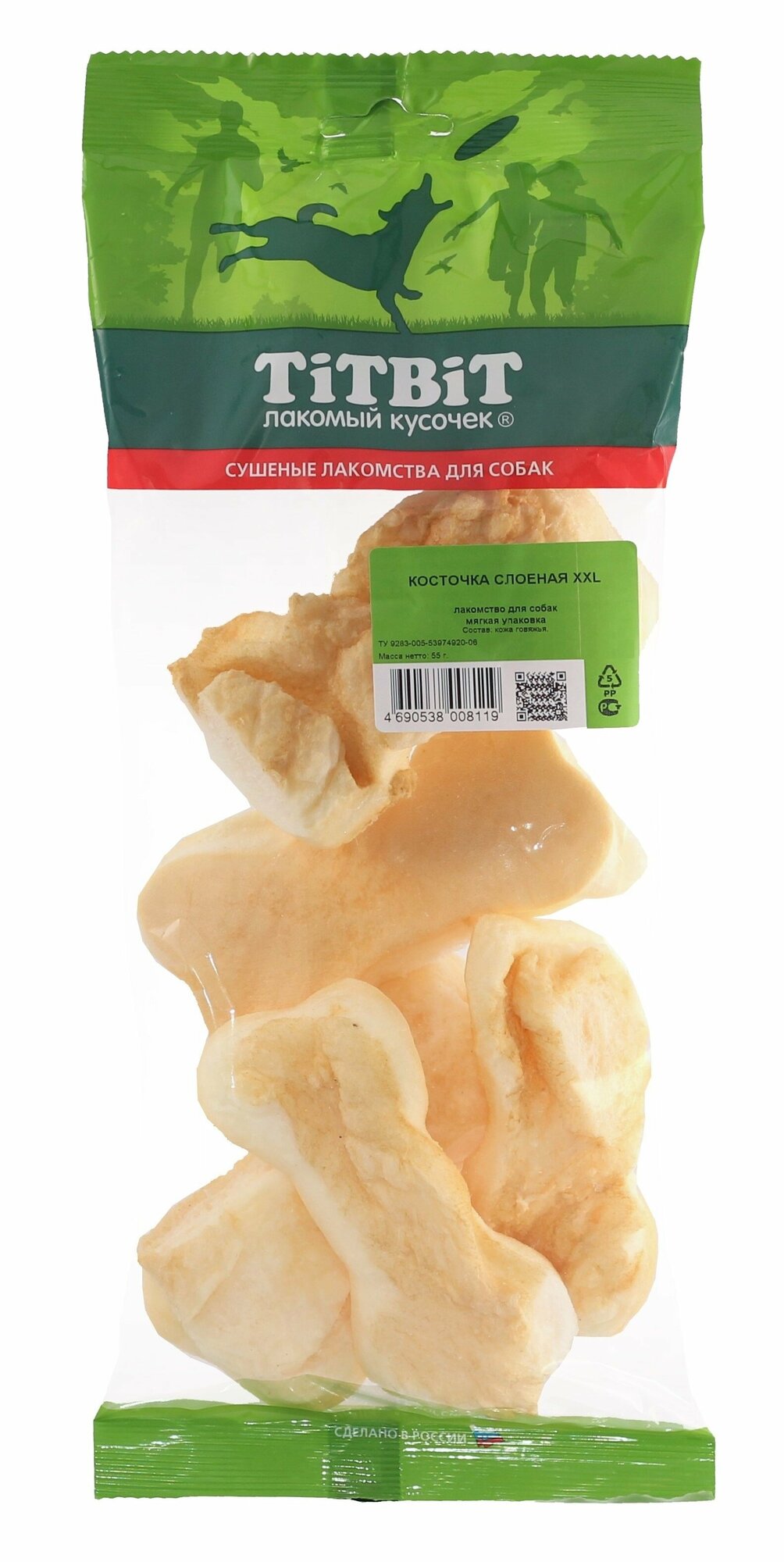 Лакомство TiTBiT для собак, косточка говяжья слоеная XXL, 55 г