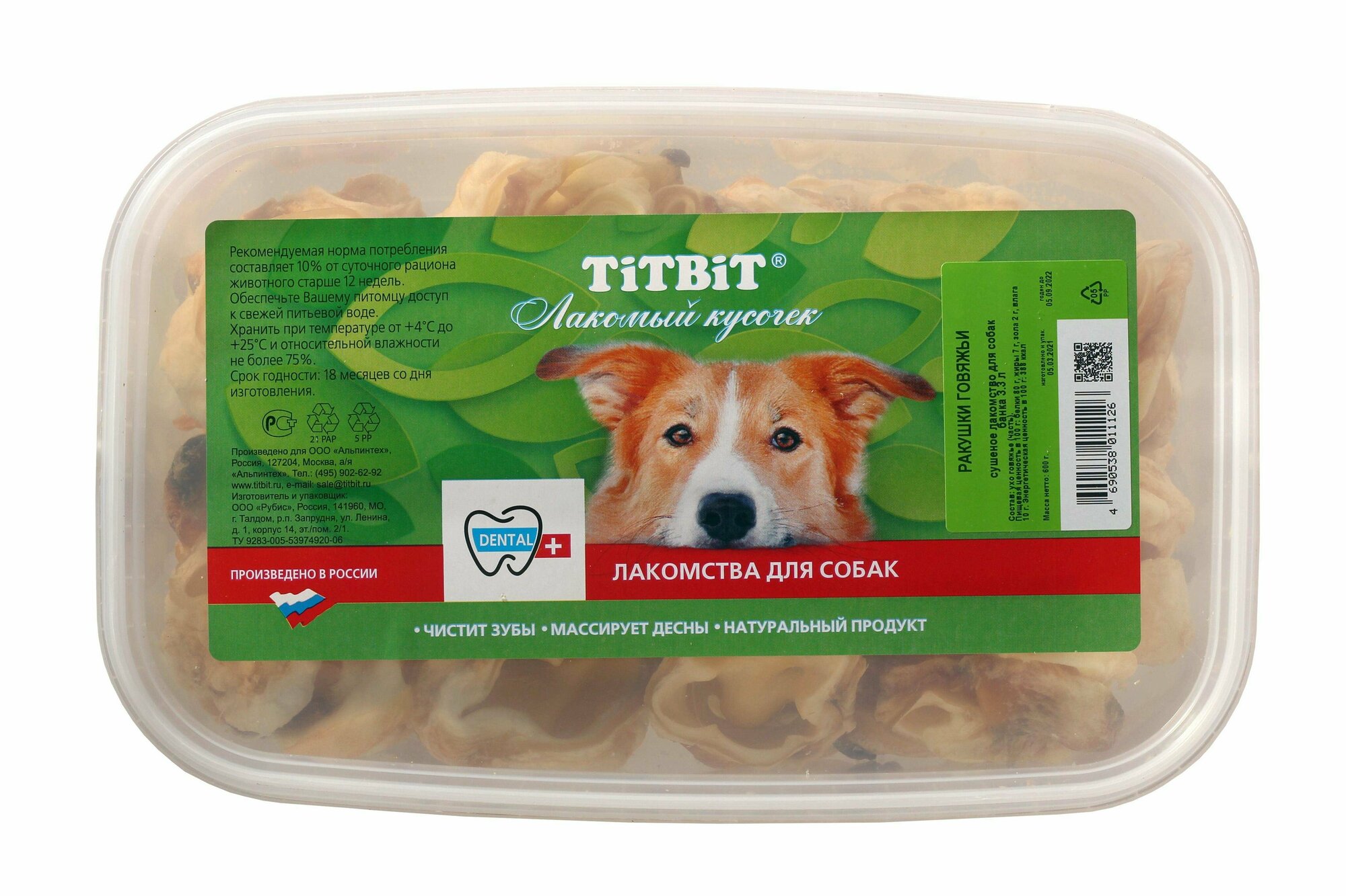 Лакомство Titbit для собак Ракушки говяжьи 3,3л (банка) / 1 шт информация: