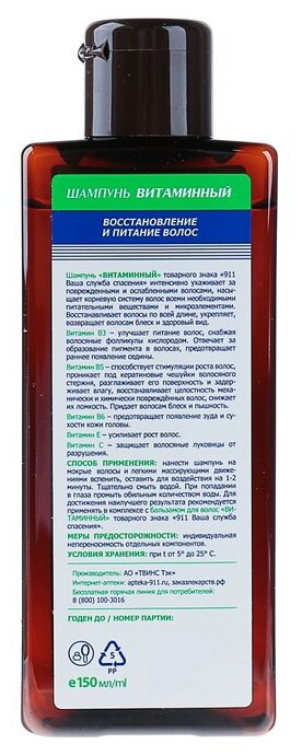 --- Шампунь для волос "911" Витаминный, восстановление и питания волос, 150 мл информация: