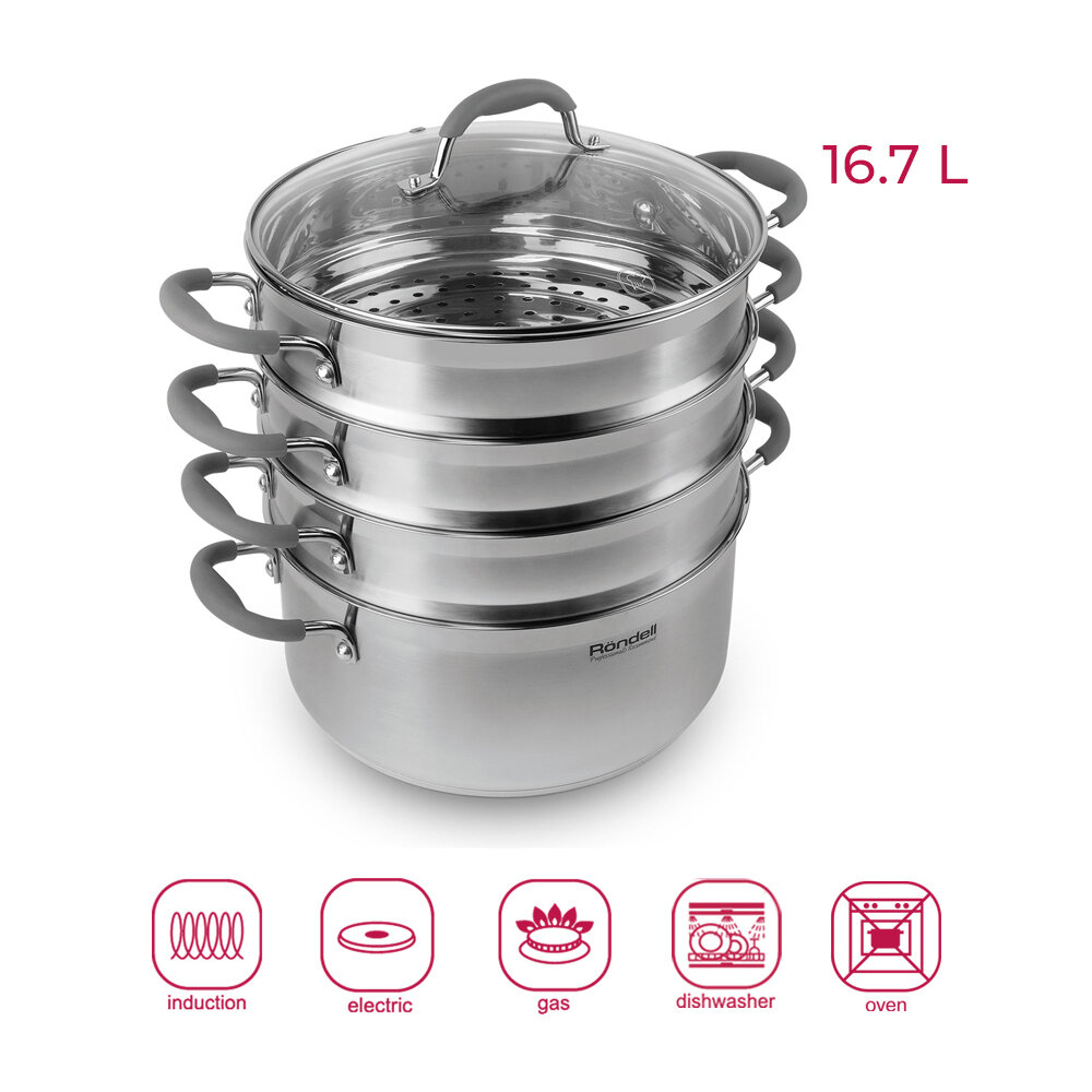 10 цен на Пароварка 26 см. 3 перфорированных уровня (5,5 л - нижний ярус) Rondell RDS-1103