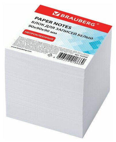 Блок для записей BRAUBERG, непроклеенный, куб 9х9х9 см, белый, белизна 95-98%, 122340 В комплекте: 1шт.
