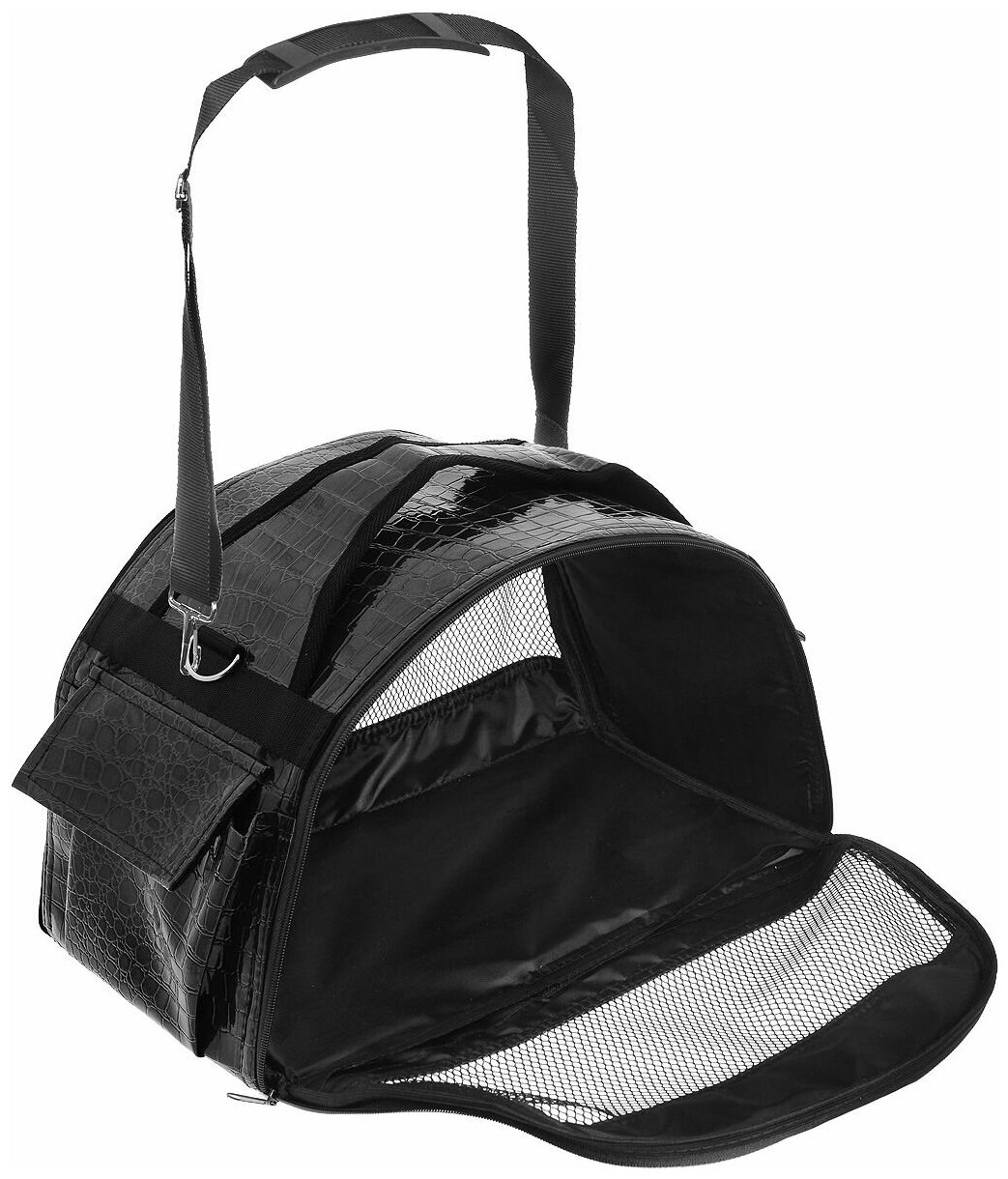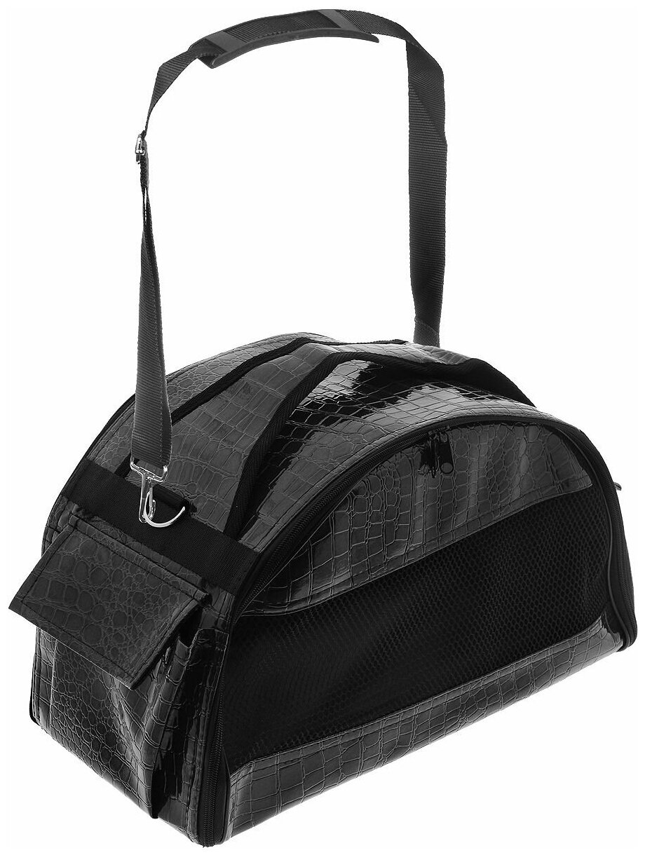 Зооник Сумка-переноска средняя полукруглая из кожзама черная 420х230х250
