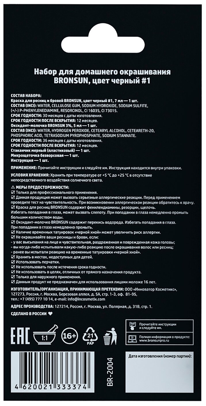 Набор для домашнего окрашивания BRONSUN (Бронсан), цвет черный #1 new информация: