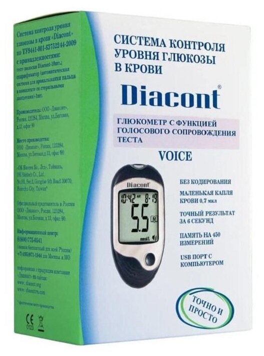 Глюкометр Система контроля уровня глюкозы в крови Diacont ( Voice) информация: