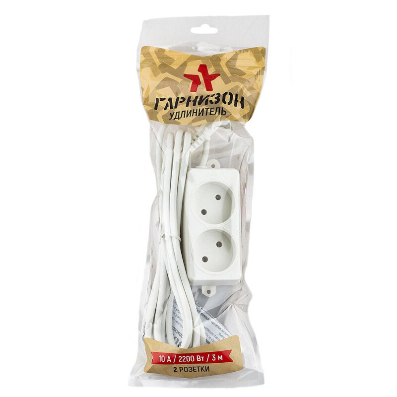 Удлинитель Гарнизон EL-NL2-W-3, 2 розетки, допустимый ток 10 А, длина 3 метра. 584 ₽