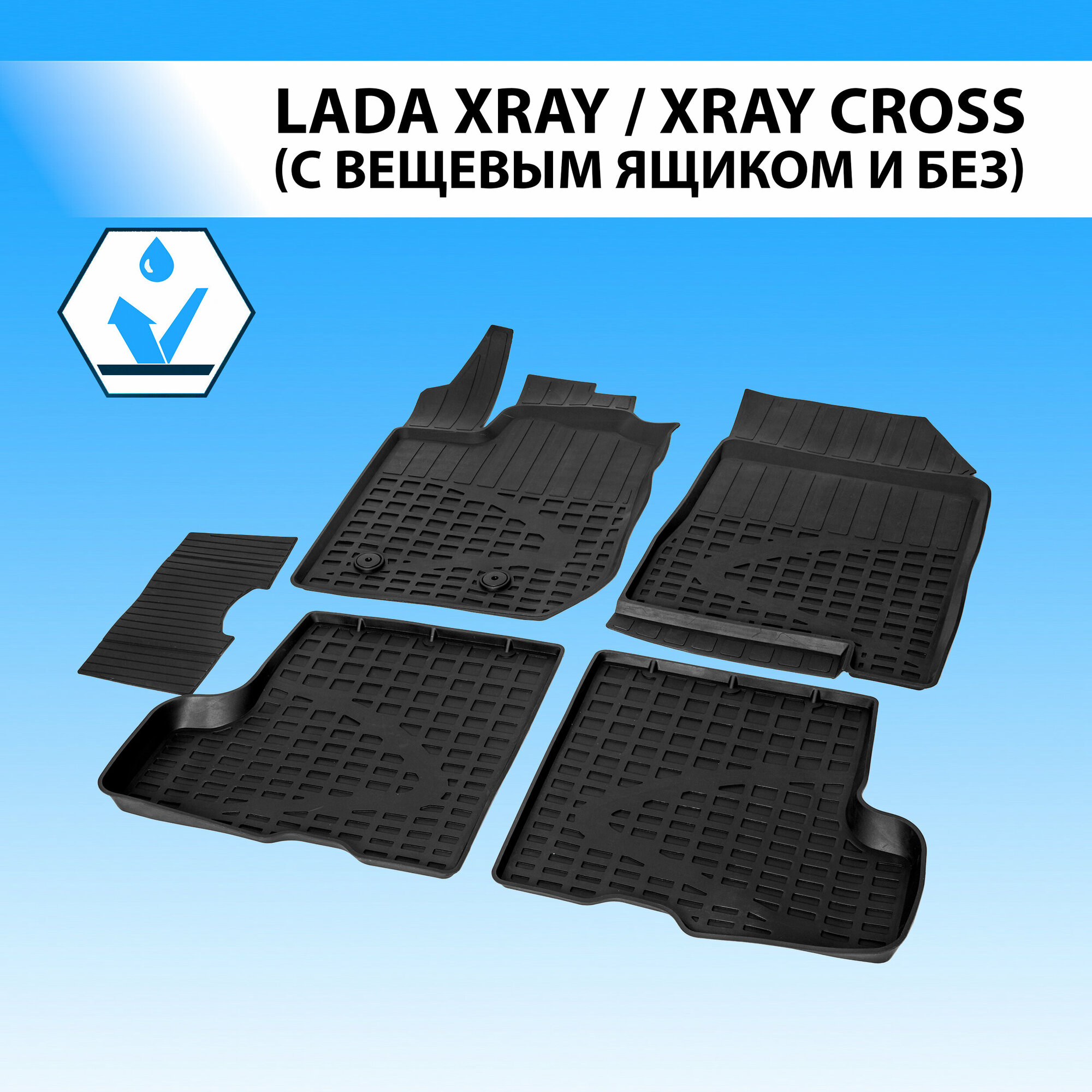 Коврики в салон автомобиля литьевые Rival Lada Xray хэтчбек 2015-н.в./Xray Cross хэтчбек 2018-н.в. (с вещевым ящиком и без), резина, 5 шт., 66007002