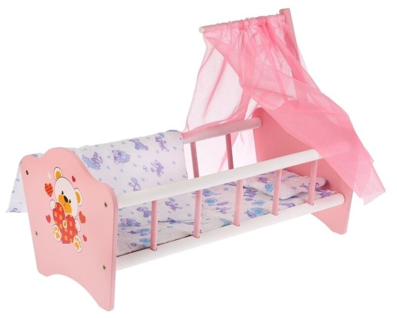 Кроватка для кукол Карапуз Мой мишка, деревянная, 52 см, постельные принадлежности (RB-B-C) информация: