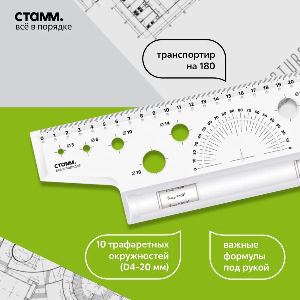 СТАММ Рейсшина 30 см (ЛР20), прозрачный/белый