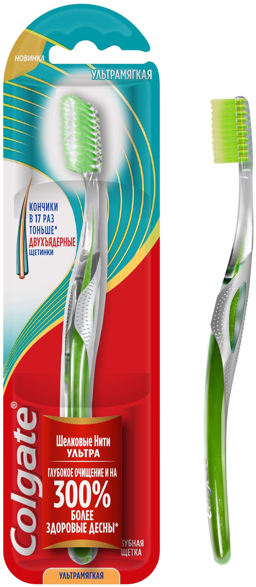 Зубная щетка Colgate Шелковые Нити Ультра Зубная щетка (ультрамягкая) зеленая информация: