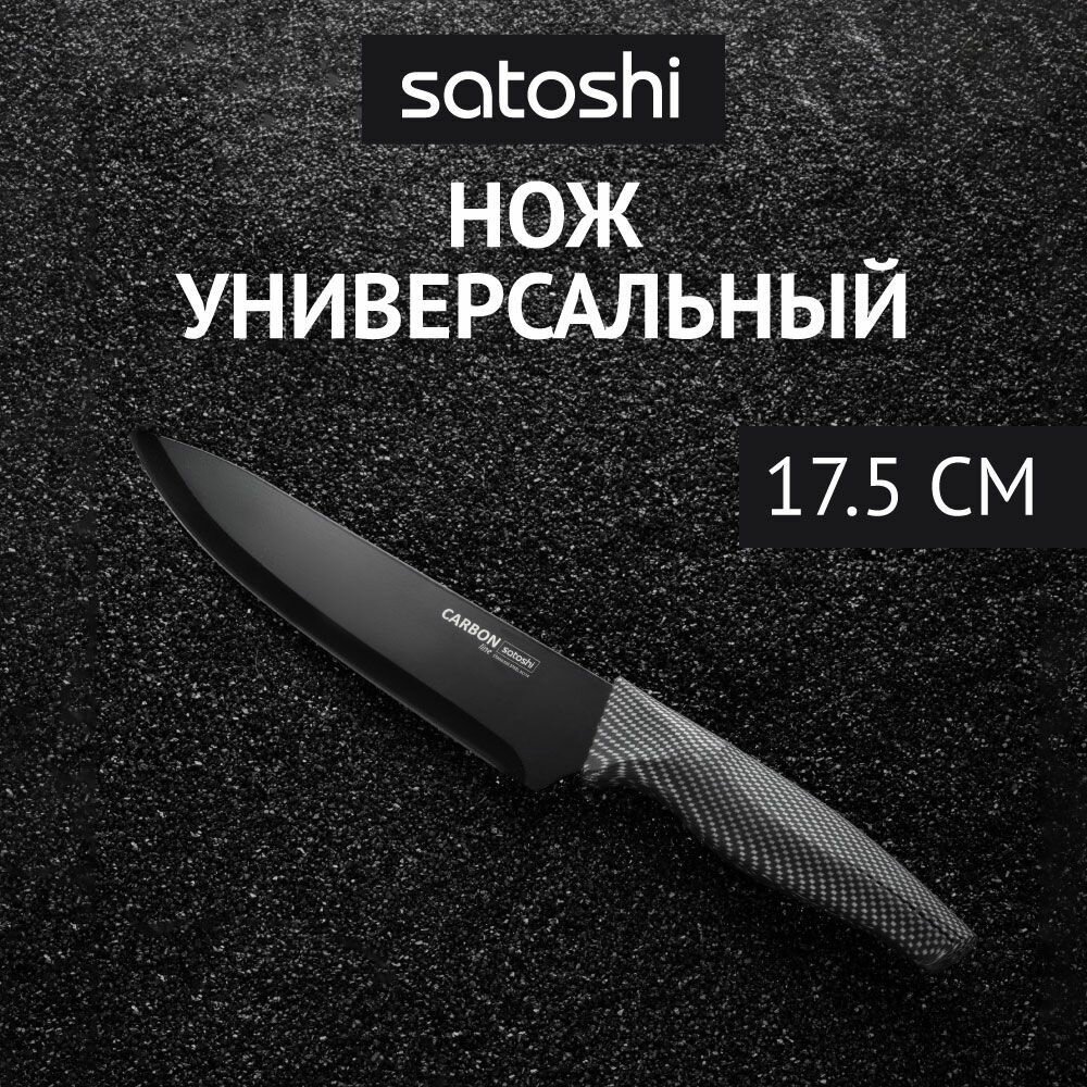 Шеф-нож кухонный 17,5 см SATOSHI Карбон с антиналипающим покрытием, универсальный нож, нож для мяса, рыбы