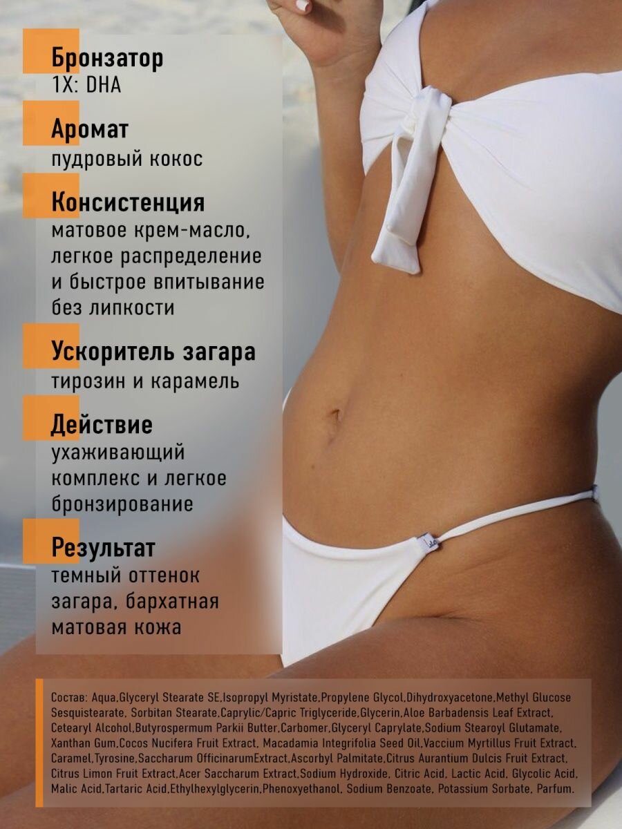 Крем масло для загара на солнце и в солярии с бронзатором информация: