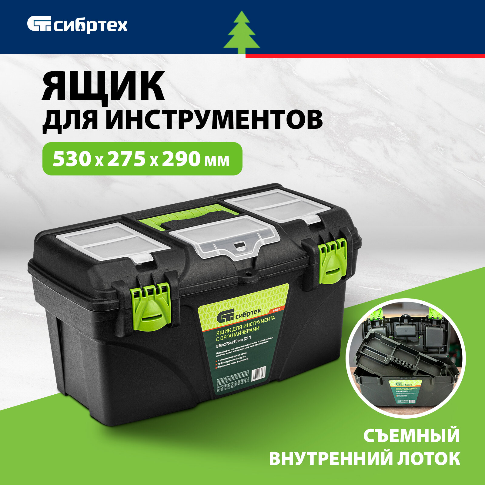 СИБРТЕХ Ящик для инструментов 21, с органайзерами 90809 информация: