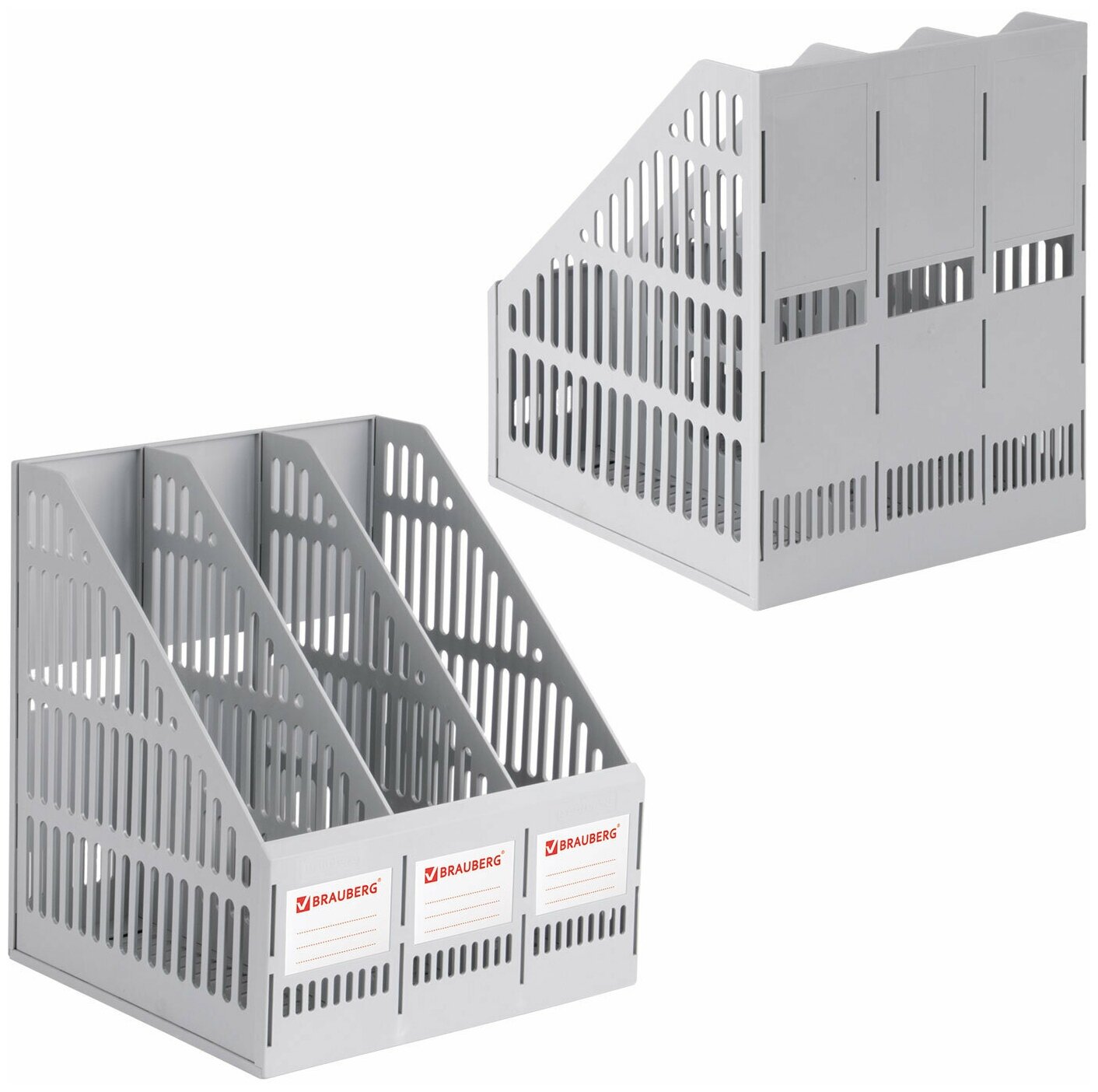 Лоток вертикальный для бумаг BRAUBERG "SMART-MAXI" (254х255х297 мм), 3 отделения, сетчатый, сборный, серый, 231524 Комплект - 2 шт.
