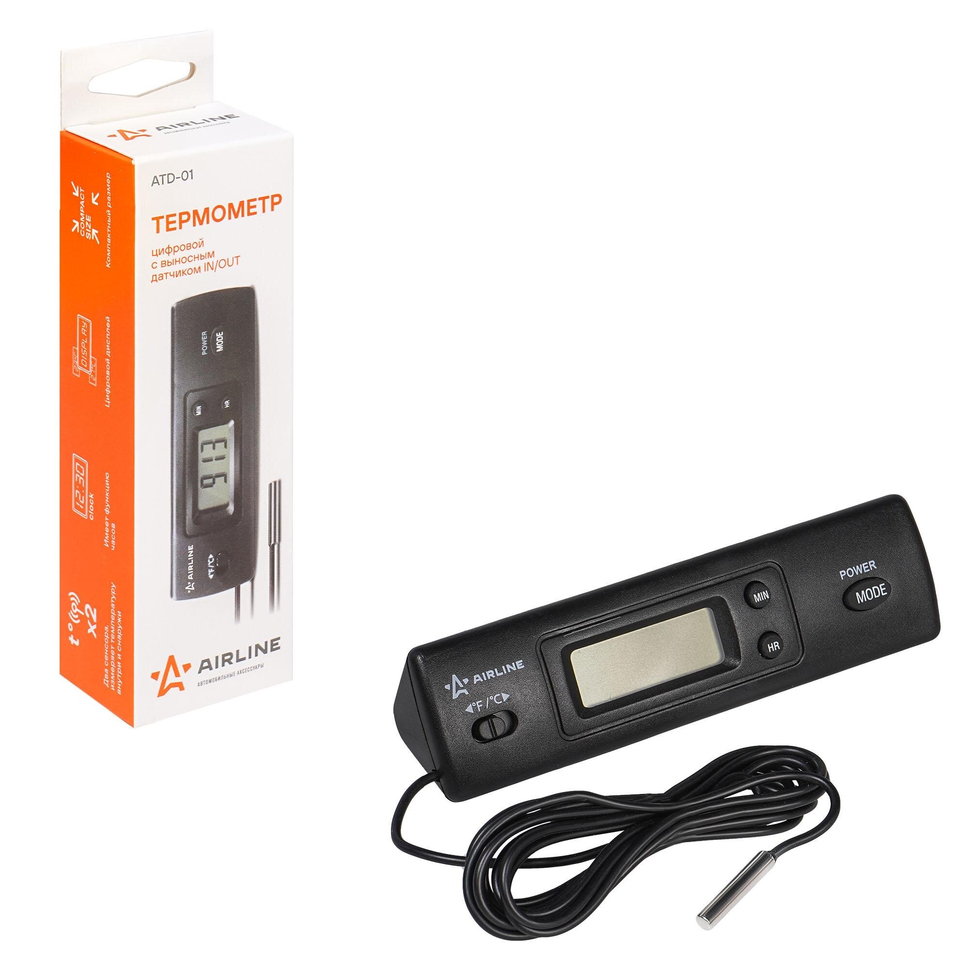 AIRLINE ATD01 термометр цифровой С выносным датчиком IN/OUT (ATD-01) 1шт