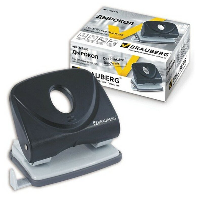 Дырокол BRAUBERG "Einkommen", большой, на 25 листов, черный, 222542 информация: