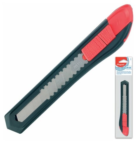 Нож канцелярский Maped универсальный, 18 мм, "Start", фиксатор, корпус черно-красный (18211)