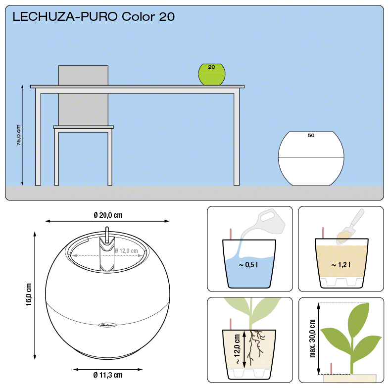 Кашпо Lechuza PURO Color 20, с автополивом и субстратом