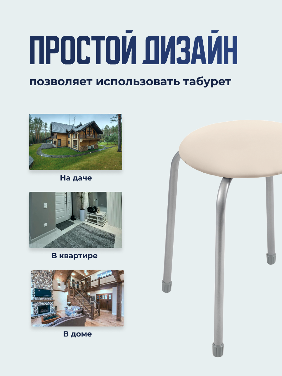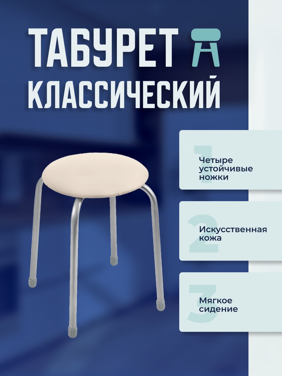 Табурет ТК02 "Классика 2" на 4-х опорах круглый слоновая-кость 39х39х46 см ника 1 150 ₽